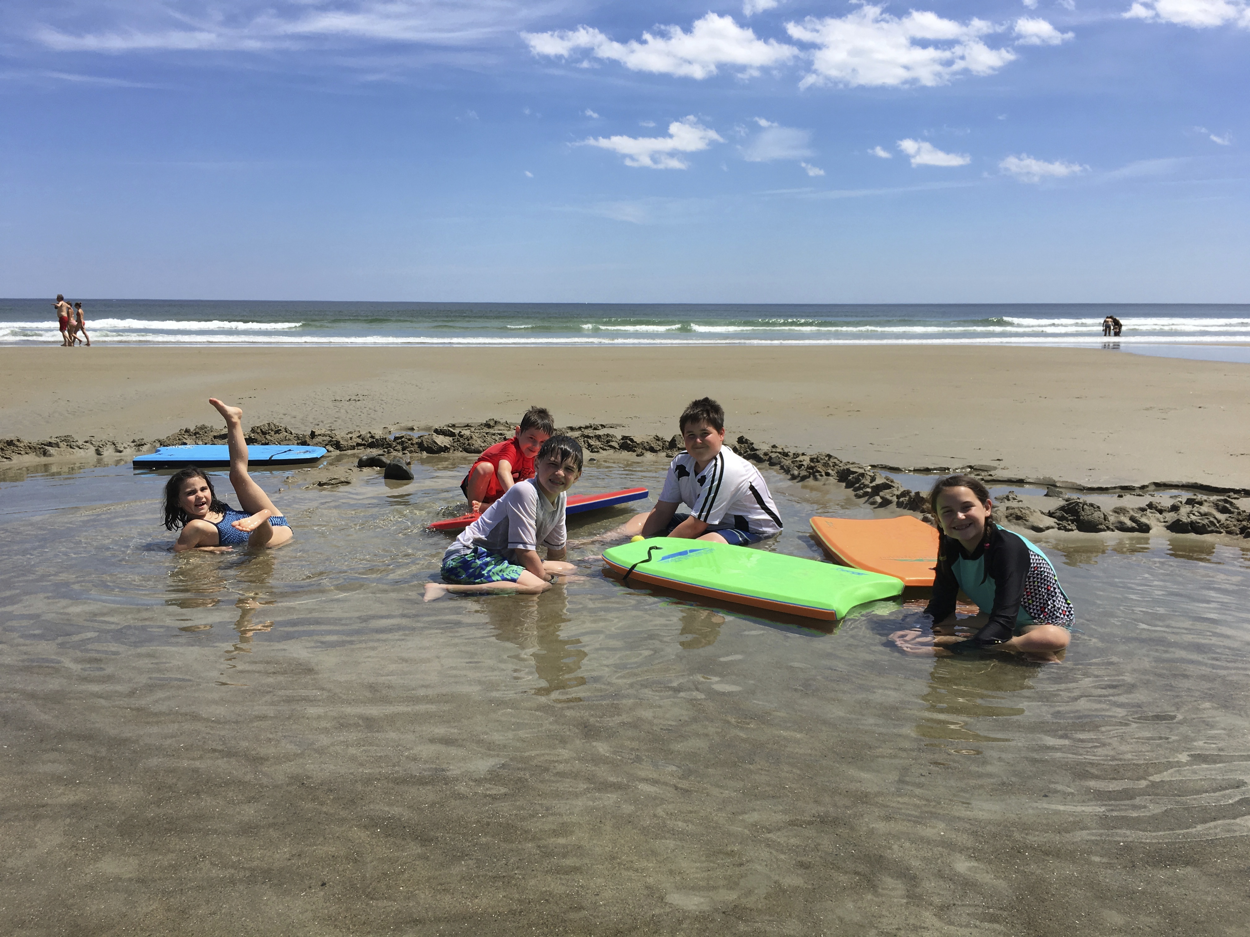 It was a beautiful summer with a couple notable twists: the Clickman clan lived there from June 30 through August 15; it featured phenomenal weather with the longest stretch of sun and clear skies I can remember in our 20 years of owning the beach house. We had our annual 4th of July party, there were sleepovers, lots of boogie boarding, yummy deck food grilling, drippy castle building, freeze pops; river and lake building and visits to the Scoop Deck. Here’s a visual recap of July & August: