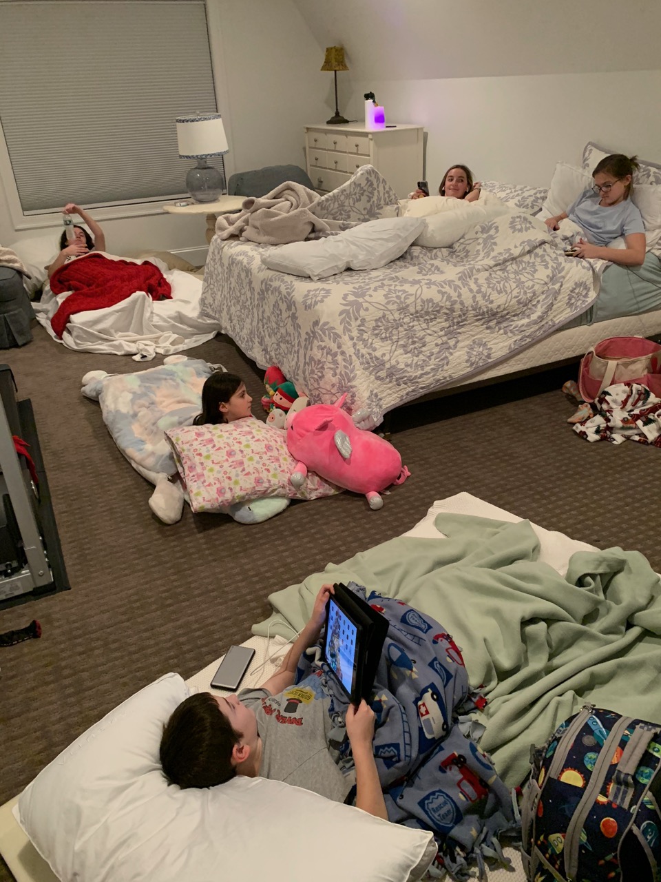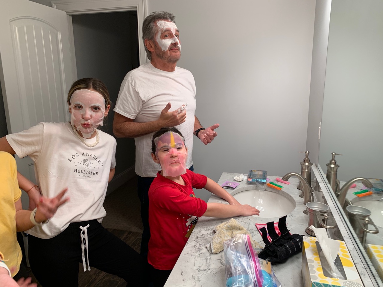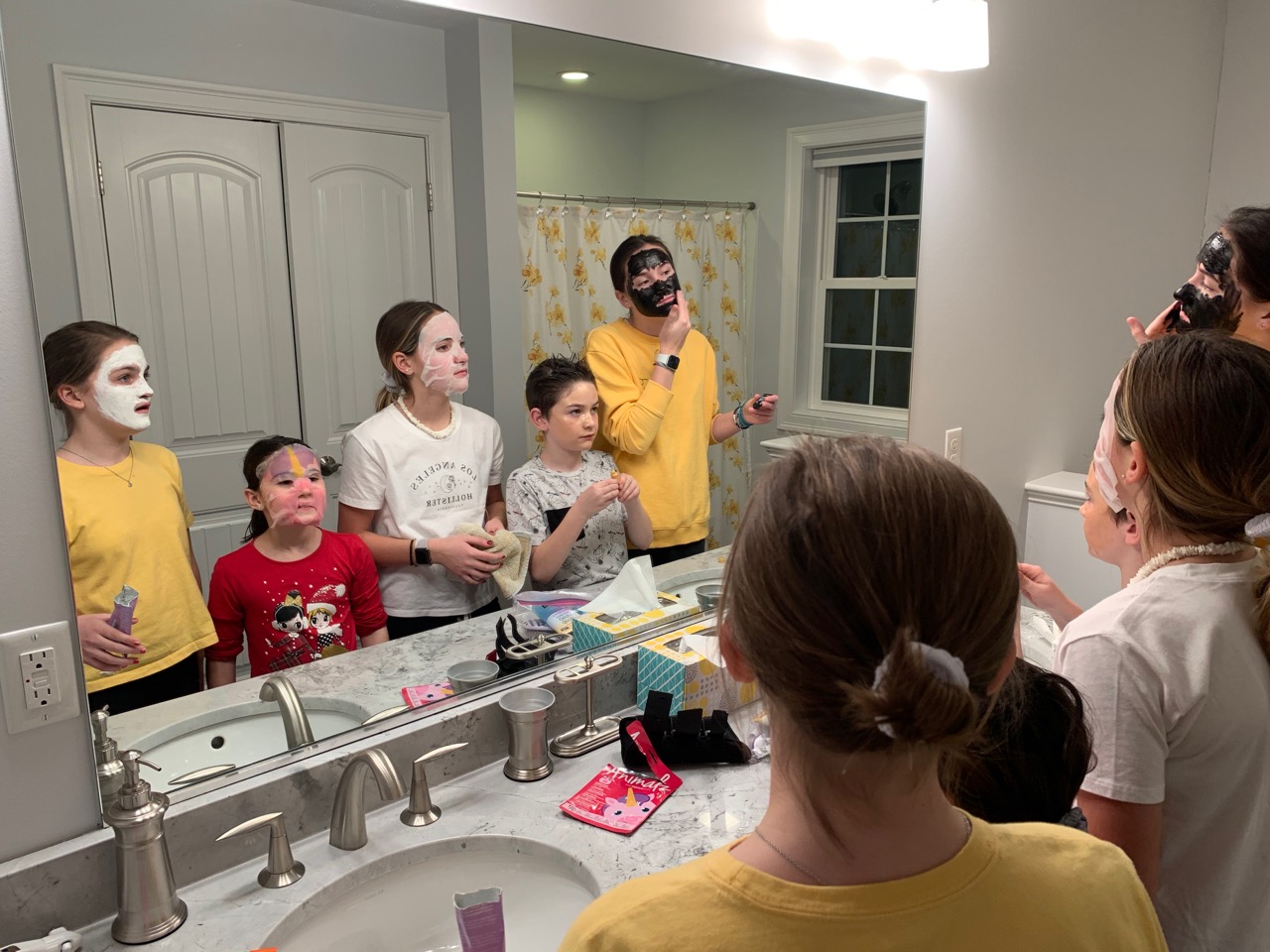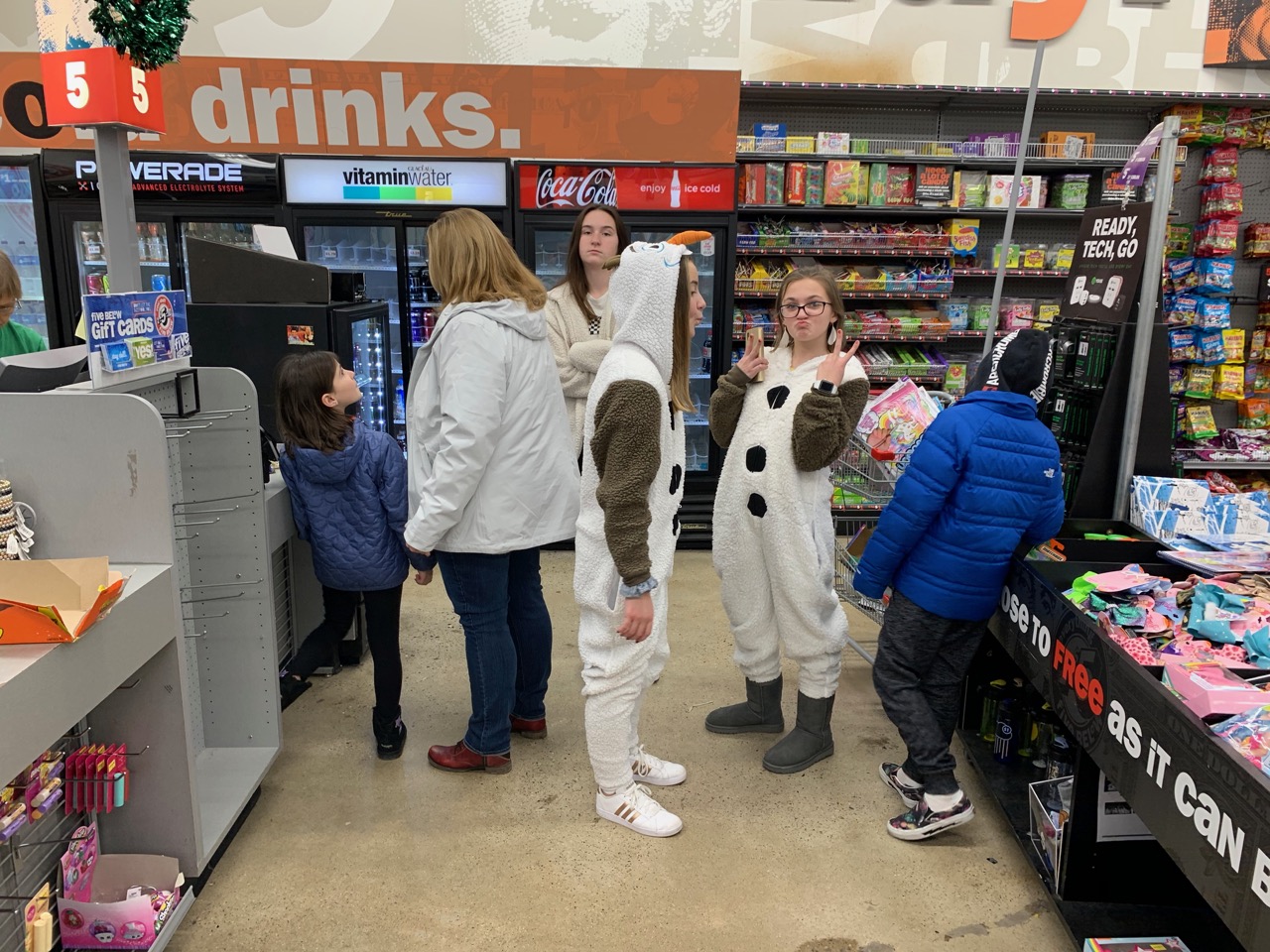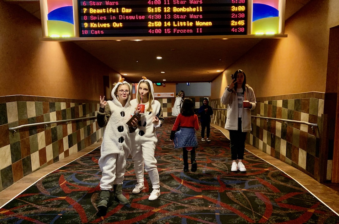 (1) going to 5 Below for Candy because it’s a lot cheaper than the movies; (2) me stuffing my parka full of candy so we can get into the movies , no one cared or noticed, ha, (3) watching Frozen 2; (4) going back to our house where everyone painted their faces with masks, including me, (5) fun & frivolity, (6) everyone in the same room for a sleepover!